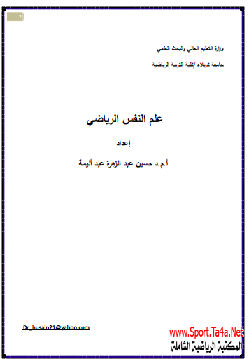 برجاء ذكر المصدر حتى تعم الفائدة :المكتبة الرياضية الشاملة : كتاب علم النفس الرياضي pdf - حسين عبد الزهرة عبد أليمة