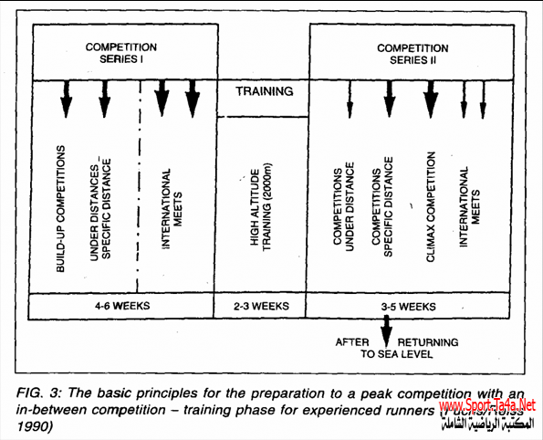 أسابيع من التدريب و تدريبات المرتفعات من 2 حتى 3 أسابيع لإعادة التأقلم و التكيف قبل المنافسات و المسابقات المهمة.