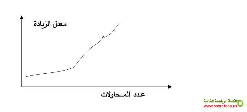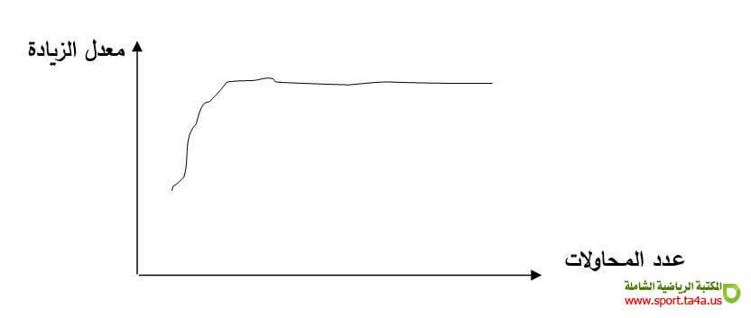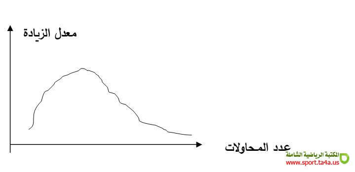 ب ـ منحنى الزيادة السلبية: يلاحظ تحسن سريع في البداية ثم يظهر نوع من الاستقرار يليه تدهور ملحوظ رغم استمرار التدريبات و السبب في ذلك هو: