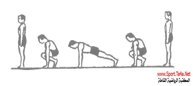 - ثني الركبتين كاملاً مع وضع كفا اليدين على الأرض ( سلاميات الأصابع للأمام والكفان باتساع الصدر).