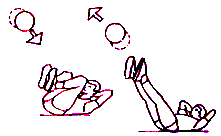 2. اليدين خلف الكرة والمرفقين لخارج.