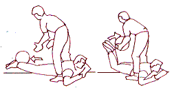 7. عند أداء التمرينات واللاعب مستلقي على ظهره يجب التأكيد على أن ظهر اللاعب يجب أن يكون دائماً ملامساً للأرض.