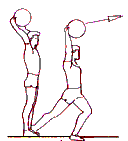 2. رفع الكرة بيدين مستقيمتين فوق الرأس , الأكتاف ممطوطة والصدر للخارج.