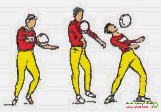 ضرب الكرة بالرأس من الثبات الأداء الفنى للمهارة 1- يقف التلميذ مع وضع رجل أماما ورجل خلفا او قد تكون القدمان متجاورتان والمسافة بينهما باتساع الحوض والركبتان مثنيتان قليلا وترتفع الذراعان قليلا الى