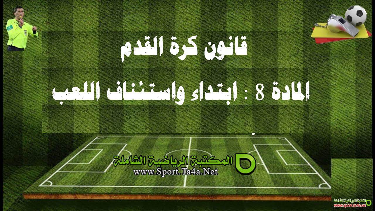 برجاء ذكر المصدر حتى تعم الفائدة :المكتبة الرياضية الشاملة : قانون كرة القدم: المادة 8 : ابتداء واستئناف اللعب
