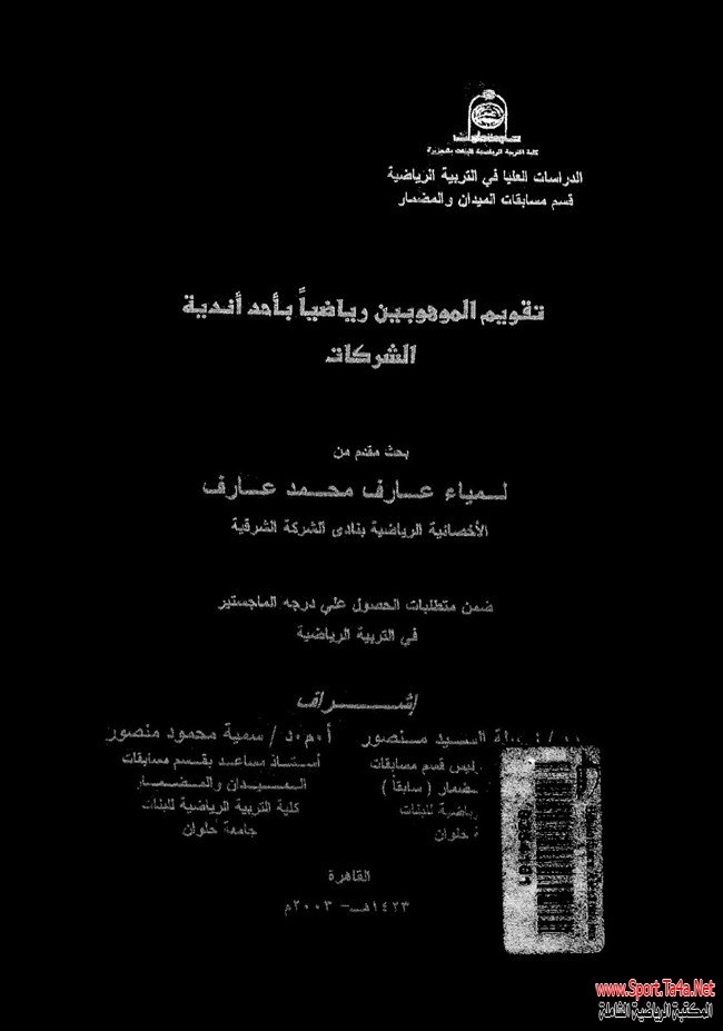 برجاء ذكر المصدر حتى تعم الفائدة :المكتبة الرياضية الشاملة : تقويم الموهوبين رياضيا بأحد أندية الشركات